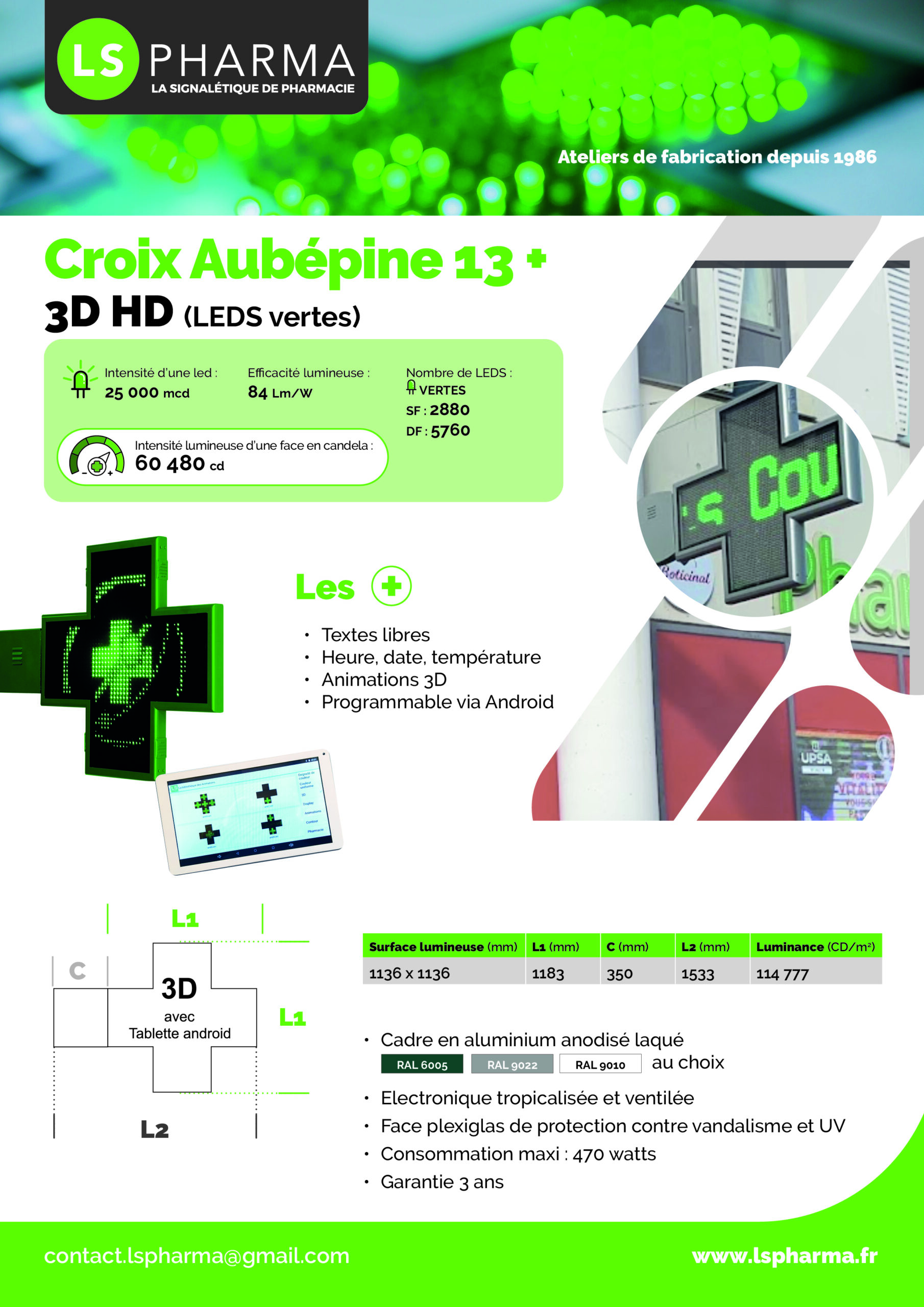 La Croix HD Aubépine 13+ est le modèle le plus lumineux de la gamme HD, spécialement conçue pour les pharmacies recherchant une visibilité extrême, même en plein soleil ou zones à fort passage.