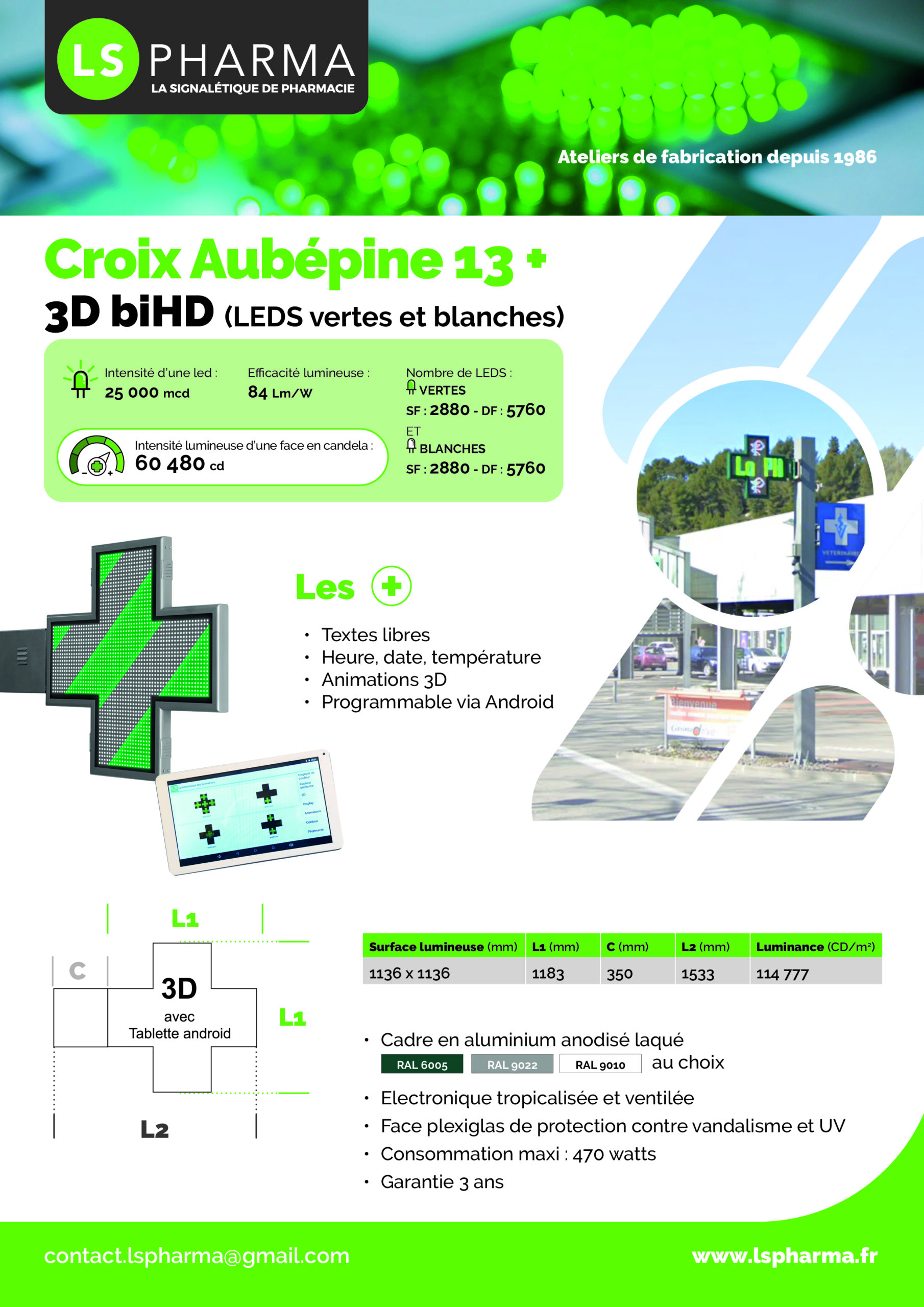 LS PHARMA AUBEPINE 13+ - Croix LED HD verte / bicolore Images